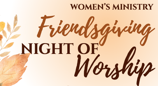 We will have a powerful night of worship, testimonies, and sweet fellowship over a Friendsgiving meal.